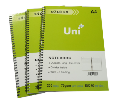 -Là sản phẩm sổ tập thương hiệu Uni Plus dạng ghi chú khổ A4, giấy kẻ ngang trắng đẹp ĐL 70gsm, dày 200 trang có lò xo bên mép trái thuận tiện cho việc ghi chép hoặc xé rời các trang cần thiết phục vụ cho công việc văn phòng.